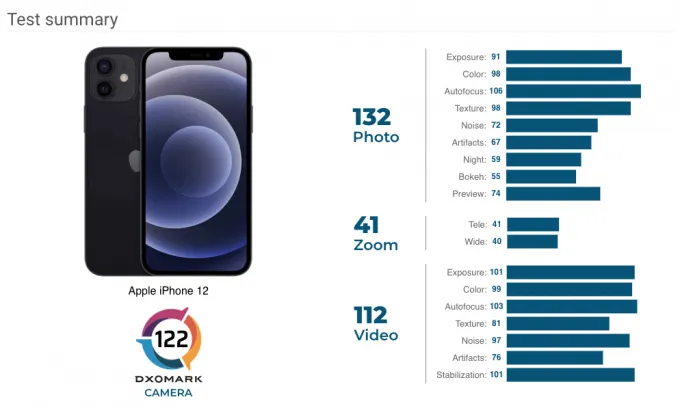 В итоге iPhone 12 набрал 122 балла — 132 за видео и 112 за фото. Это 13-й результат топа.