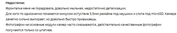Недостатки не так критичны. Во-первых, можно выделить отсутствие разъема для наушников, слота для SD-карты и беспроводной зарядки. Во-вторых, юзеры жалуются на тройную камеру на 64+13+5 Мп. Говорят, что изображения выходят смазанными и мыльными. Возможно, это пофиксят следующими обновами.