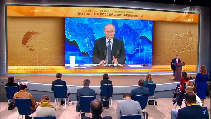 В 2020 году ежегодную большую пресс-конференцию Владимира Путина объединили с прямой линией. Президент отвечал на вопросы из Ново-Огарево, на связи с первым лицом находились журналисты из кучи городов России.