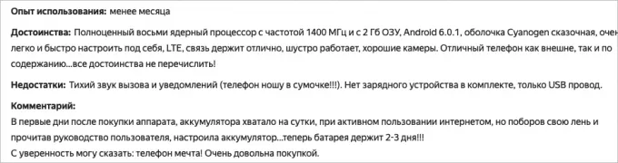 И последнее. Иногда производители, которые заказывают гнилые отзывы, хотят погулять на все деньги. Тогда они еще и пинают конкурентов. Как только читаем что-то в стиле «Купил айфон, выбросил, взял гэлэкси», перестаем воспринимать отзыв всерьез. Конечно, настоящие люди тоже сравнивают свои девайсы с другими аппаратами, но обычно объект сравнения – какая-нибудь старая модель, а не действующий соперник по рынку. Так что к сравнениям всегда надо относиться скептически.