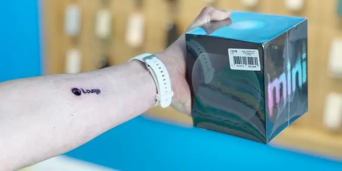 Акцию в честь открытия устраивал украинский магазин iLounge. Чтобы получить в подарок новый смартфон, нужно было прийти в салон и согласиться на татуировку. Рисунок с названием и логотипом салона делали прямо на лице.