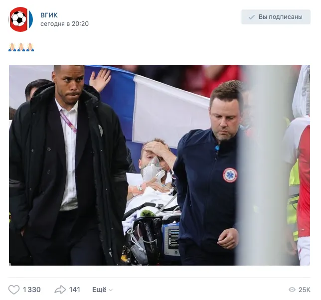 Инцидент произошел на 43-й минуте матча. Эриксена никто не трогал — 29-летний игрок ускорялся по бровке без мяча, как вдруг пошатнулся и упал лицом вперед. К Кристиану бросились игроки сборной Дании, спустя секунды стало понятно, что произошло что-то ужасное.