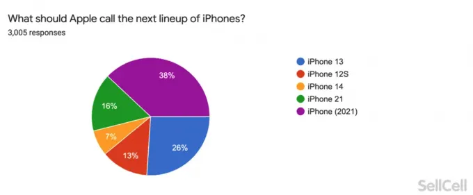 Согласно опросу, лишь 26% респондентов не возражают против наименования iPhone 13. Большинство (38%) предлагает выбрать название iPhone (2021), 13% (какая ирония) склоняются к наименованию iPhone 12s. 16% пользователей надеются, что свежий девайс назовут iPhone 21 — они намекают, что Apple должна перескочить через девять поколений. И лишь 14% юзеров купят новейший флагман, если его назовут iPhone 14.