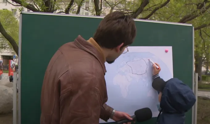 И это самая смешная часть видео. Замаскированный под регионального телекорреспондента чувак просил случайных прохожих нарисовать на карте честные исторические границы России, а ещё задавал несколько коварных вопросов. Беспроигрышный формат, потому что реальные люди всегда смешнее пародий.