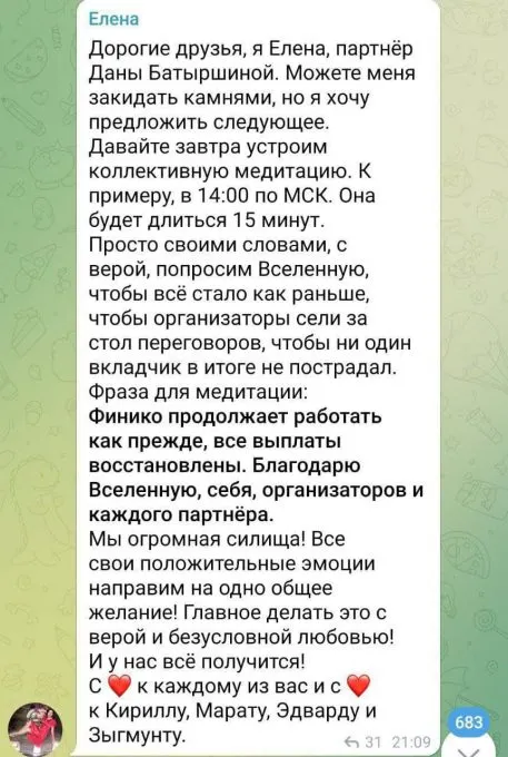 Люди вложили в «Финико» последние деньги. Теперь инвесторы верят в коллективную медитацию
