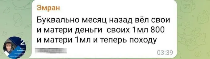 Авторы телеграм-канала «Медиатехнолог» изучили один из чатов горе-инвесторов и почитали их сообщения. Складывается впечатление, что на безбедную старость Кирилла Доронина, братьев Сабитовых и Зигмунта Зигмунтовича люди скидывались последними деньгами. Если таковых не было, то лавэ брали в банке.