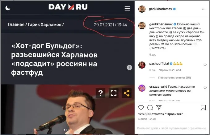 Гарик не раскрывает причин трансформации, но особо не скрывает изменений с телом. В начале недели артист посмеялся над тем, что сперва таблоиды назвали его «разъевшимся», а потом написали, что артист «похудел на хот-догах». «Обожаю наших некоторых писателей ))) два дня — две новости ))) за сутки сбросил 15-шку ))», — ответил Харламов (орфография и пунктуация сохранена — «Палач»):