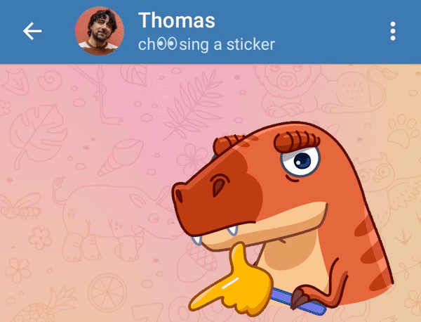 Кроме статуса «Печатает..» или «Записывает голосовое сообщение» появился новый — «Выбирает стикер».