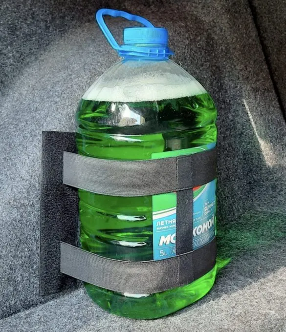 Автомобилисты точно поймут меня — ничто так не бесит, как какая-нибудь ерунда, которая гремит в багажнике во время движения. Чаще всего это бутылка из под незамерзайки, которая не влезла в бачок. Органайзер на липучках устраняет эту проблему, закрепляя всю мелочь на стенках багажника.