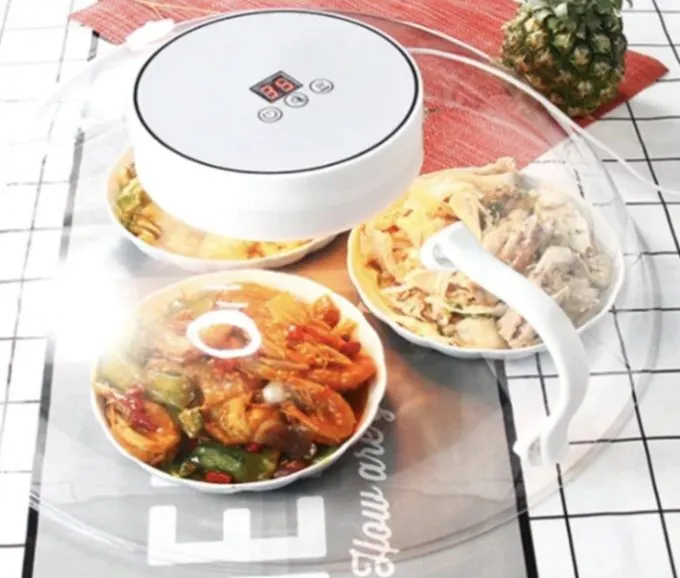 Дорогая, но полезная приблуда для тех, кого бесит остывшая еда. Механизм действия прост: надо просто поставить сверху эту крышку и она не даст еде остыть. Отлично подойдёт для пиццы и горячего, которое уже готово и ждет подачи. Она реально большая и налезает сразу на несколько блюд.