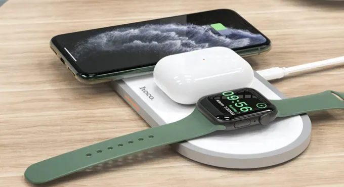 Напоследок качественное предложение от Hoco — беспроводная зарядка для сразу трех девайсов: часов, телефона и наушников. Причем зоны отличаются они не только размером, но и мощностью.