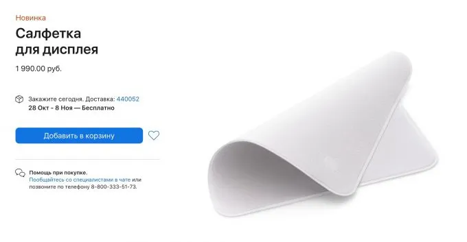 Обычную тряпочку серого цвета из неабразивного материала оценили в 2000 рублей. Этот аксессуар можно использовать для очистки экранов новых компьютеров, а также дисплеев с нанотекстурой. Кроме того, Apple не запрещает юзать его для протирки iPhone, iPad, iPod, Apple Watch.