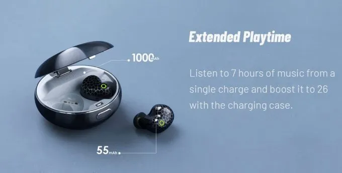 На одном заряде гаджет может проработать до 7 часов, в комплекте с кейсом автономность увеличивается до 26 часов. Наушники защищены от влаги по стандарту IPX7. Mifo HP Mini получили сенсорное управление: можно не только листать треки, но и отвечать на звонки и даже регулировать уровень громкости.