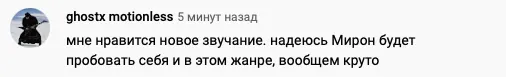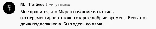 На ютубе новую песню встретили восторженными отзывами. Кажется, слушателям Мирона понравился необычный эксперимент рэпера. В комментариях отметился и главный специалист по Окси, блогер Dropdead.