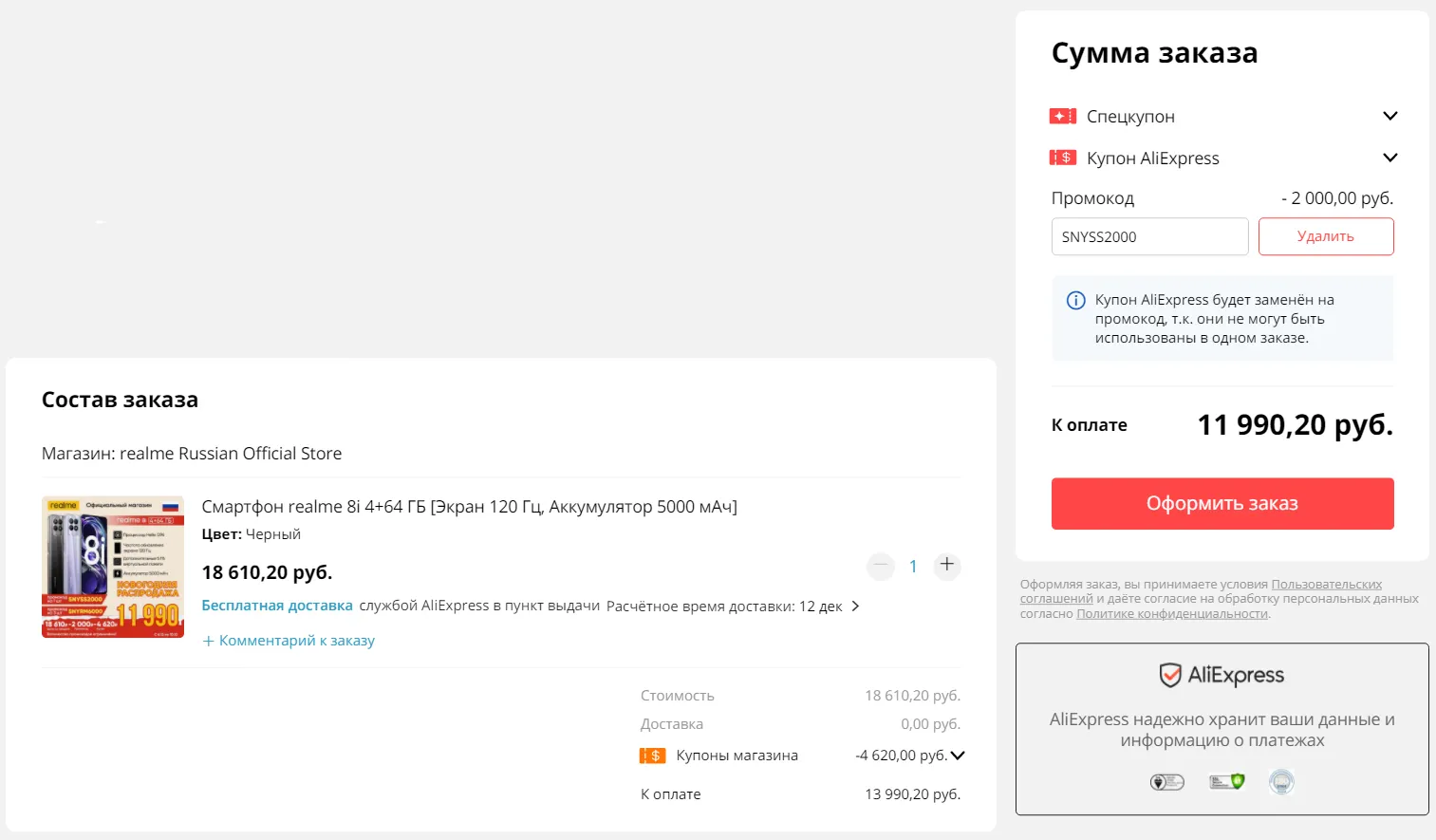 Realme 8i на 64 гига доступен за 11 990 рублей по этой ссылке. Для получения такой цены нужно лишь забрать купон продавца на 4 620 рублей и применить промо SNYSS2000. А версия на 128 ГБ висит за 13 990 рублей по этому линку. Понадобятся тот же код и купон селлера на 4 790 рублей. Предложения действительны до 10 декабря — торопитесь с покупкой.