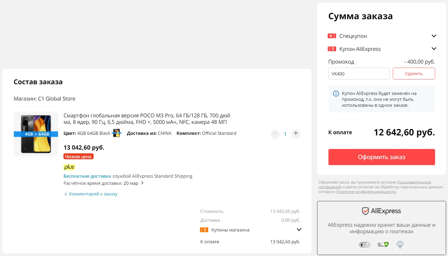 Poco M3 Pro висит на Али за 12 640 рублей с учетом промокода VK400 по этой ссылочке. В наличии совсем немного экземпляров, да и промо может сдохнуть в любую минуту, поэтому рекомендуем поторопиться с покупкой. Еще раз дублируем нужный линк для вашего удобства.