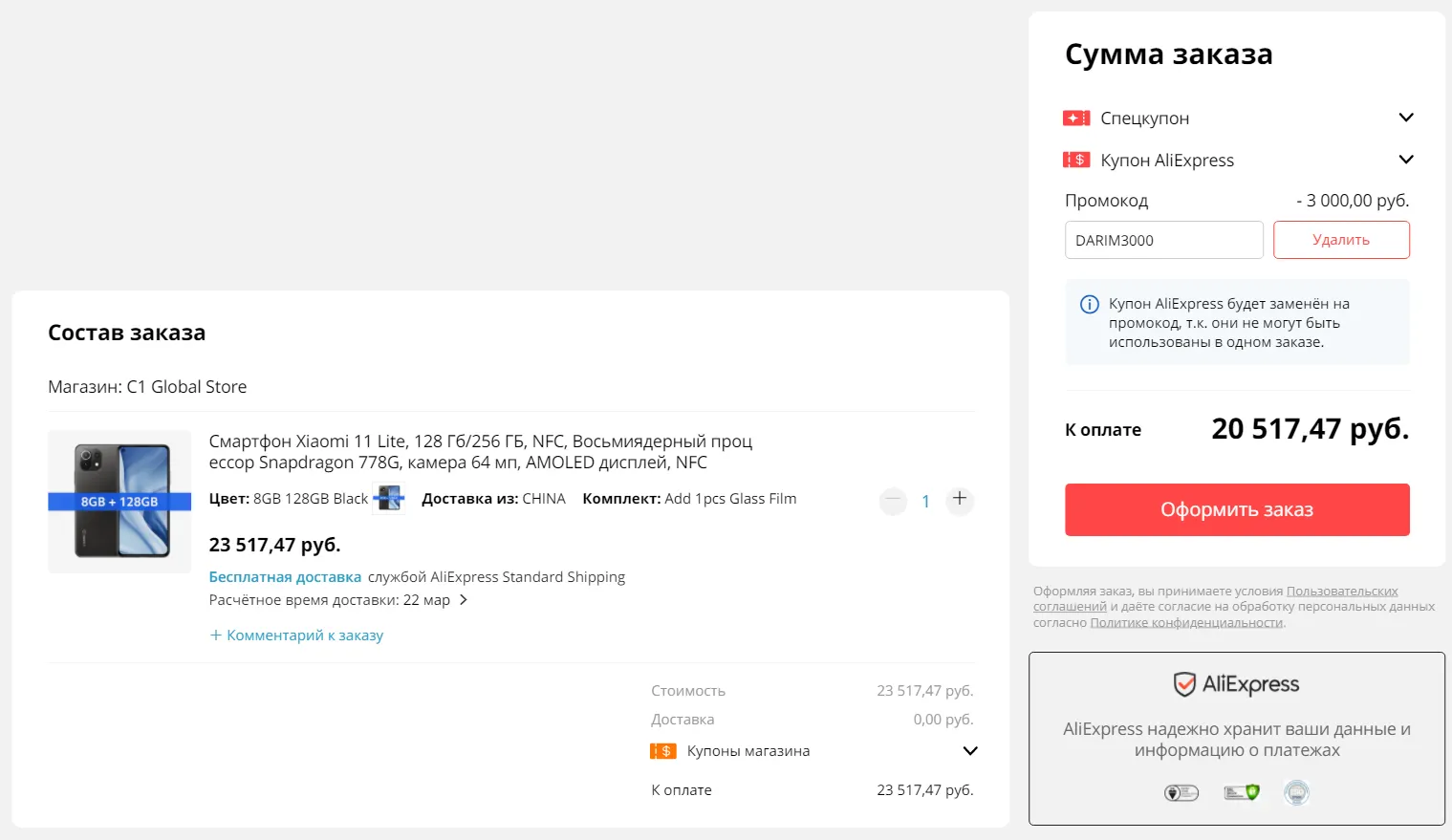 В общем, у устройства нет заметных недостатков. Можно придраться к качеству экрана и не самой высокой автономности, но с учетом прайса эти недостатки простительны. Так сколько же просят за гаджет? Всего 20 520 рублей, причем это цена миддл-конфигурации на 8/128 ГБ, хотя обычно за такие деньги доступна младшая версия с 6 гигами ОЗУ. Вот ссылка на смарт и волшебный промокод DARIM3000, который и поможет сэкономить.