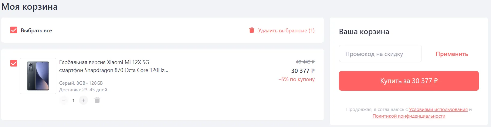 В России за «двенашку» просят от 38 630 рублей, а на Joom смарт доступен за 30,4К с учетом промокода LIGHT — вот нужный линк.