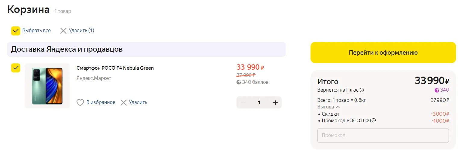 На старте продаж за девайс просят от 30 990 рублей. Младшую версию на 6/128 Гбайт можно урвать на официальном сайте, а старший конфиг на 8/256 ГБ уже висит на Маркете за 35 кэсов. Причем можно сэкономить целую тысячу, просто применив код POCO1000 — ловите нужный линк.