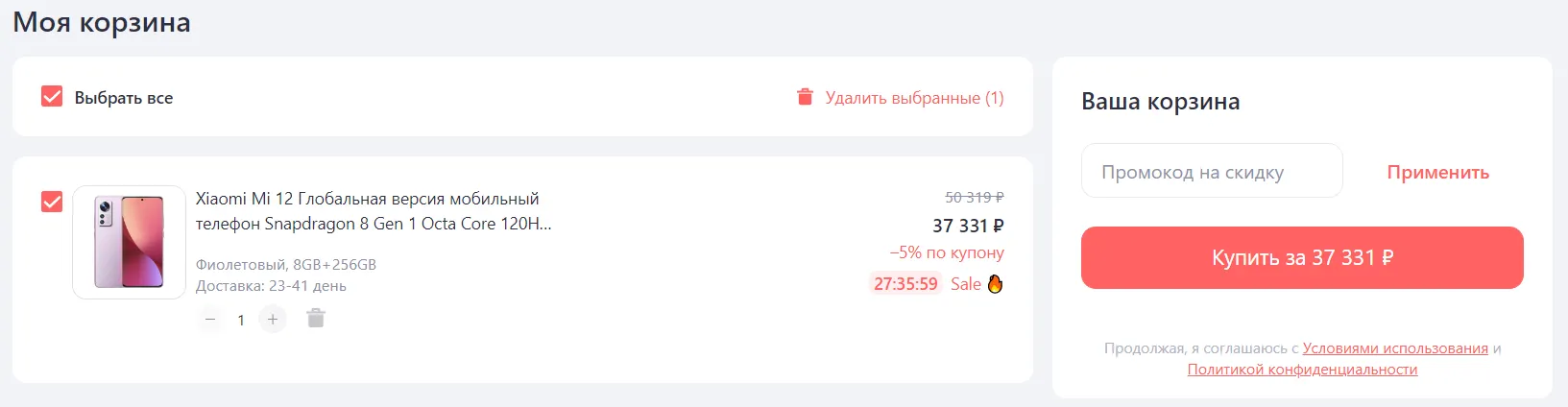 Xiaomi 12 на 8/256 Гбайт доступен на Joom всего за 37 330 рублей с учетом промокода START по этой ссылочке. Для сравнения, на Маркете за ту же версию просят минимум 46 850 рублей — как вам экономия почти в 10 кэсов? Еще раз дублируем нужный линк для вашего удобства.