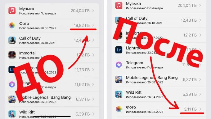Чтобы освободить место на смартфоне или планшете, нужно выбрать максимальное количество фотографий и видео и закинуть их общий альбом, а затем удалить весь контент с телефона. Изображения и ролики останутся в облаке, доступ к ним можно быстро получить через приложение «Фото».