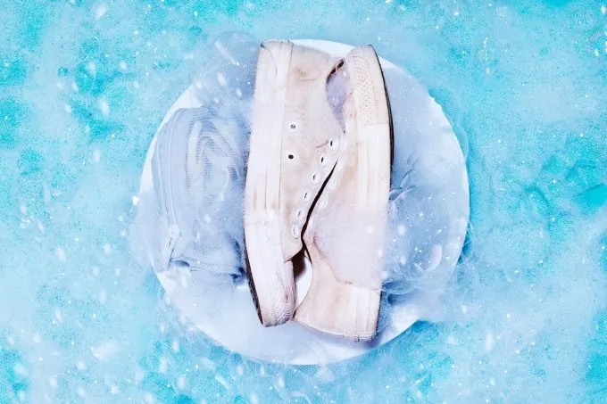 Лучше всего стирайте обувь с помощью геля, мыла или специального средства. Порошок может оставить на поверхности кроссовок белые разводы, из-за которых их придется перестирывать.