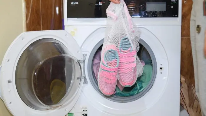 Идеальный кандидат для стирки в машине — мягкие кроссовки с тканным верхом и подметкой, которая держится с помощью ниток. Перед стиркой вытащите шнурки и стельку, если это возможно. Старайтесь стирать обувь как можно реже: каждая встреча со стиральной машинкой — стресс для ваших кроссовок.