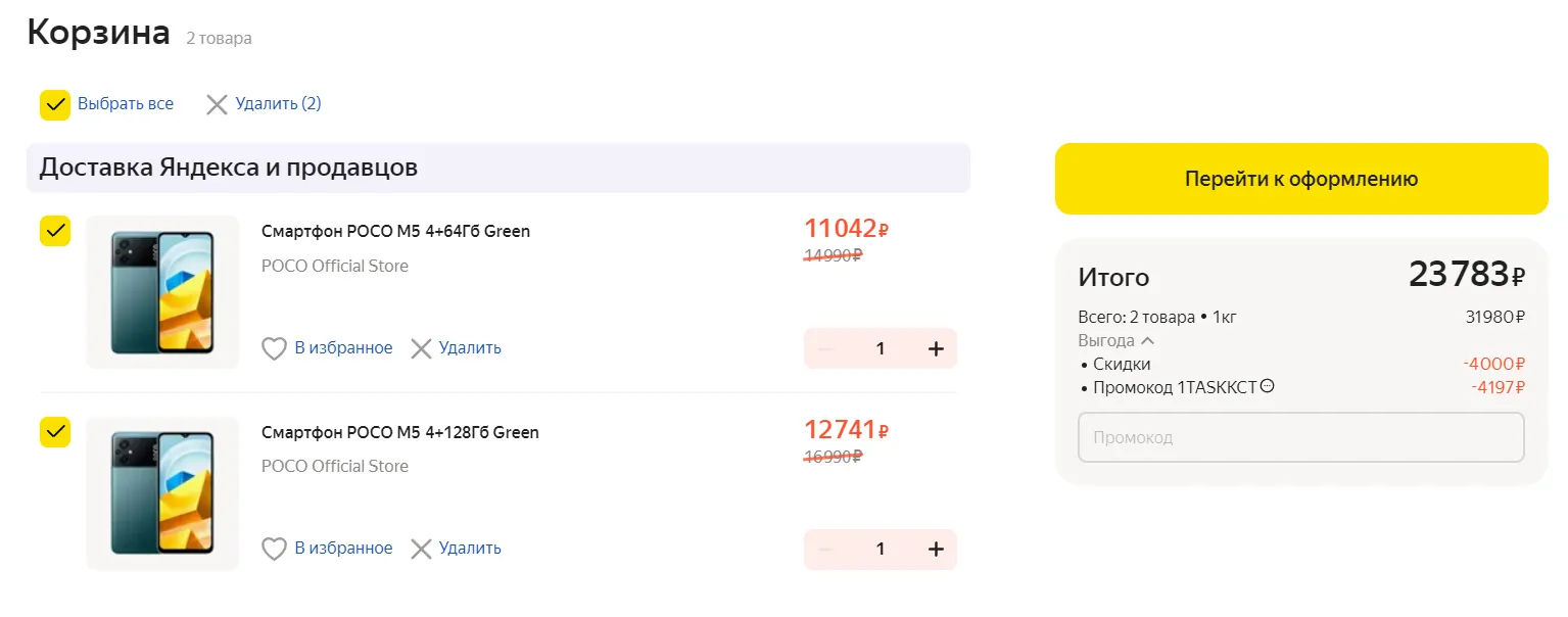 Что по цене? Проигнорируем официальный прайс в 12 990 рублей на старте продаж и сразу отправимся на Маркет — там можно сэкономить на покупке пару кэсов. Но как? Переходите по этому линку и кидайте в корзину лот от POCO Official Store, после чего оформляйте заказ с промокодом 1TASKKCT. С ним младшая версия на 4/64 гига обойдется в 11 040 рублей, средняя на 4/128 Гбайт — в 12 740 рублей. За такие деньги у Poco M5 просто нет альтернатив! Но с покупкой надо торопиться — через пару дней промо прекратит действовать. Еще раз дублируем нужную ссылку для вашего удобства.