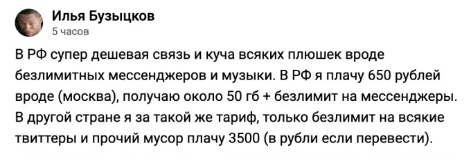 Единственное, что может обрадовать — в России относительно дешевая сотовая связь: