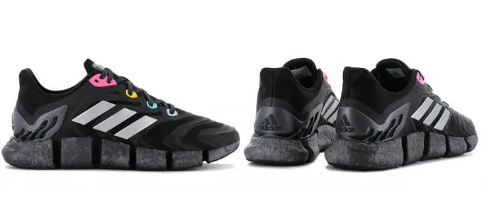 Второй айтем – черные кроссовки adidas ClimaCool Vento с технологией HEAT.RDY. Она отвечает за циркуляцию воздуха и делает обувь дышащей. То, что нужно для занятий спортом. Добавьте сюда экологичный материал Primegreen и промежуточную подошву Boost, и получите торжество современных технологий от немецкого бренда.