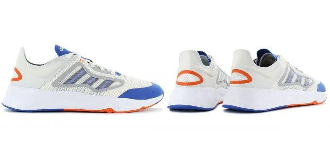 Второй айтем – бело-синие кроссовки Adidas Futureflow. Хороший вариант как для тренировок, так и для вечерних прогулок. Сетчатый верх из высокопрочной ткани сделает все, чтобы вы забыли о жаре и неприятных ощущениях, а дизайн этой модели хоть и футуристичный, но не претенциозный.