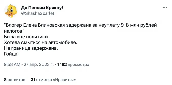 Соцсети восприняли задержание Блиновской по-разному. Кто-то был удивлен тем фактом, что Елена могла удержать такое количество денег, кто-то, напротив, не сомневался, что ушлую инфо-бизнесменку рано или поздно прижмут.