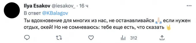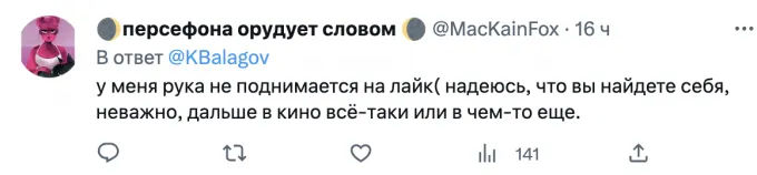 Возможно, Балагов отыграет свой уход, как это сделал другой российский режиссер Юрий Быков. В 2017 Быков через журналистов заявил о завершении карьеры — специалиста подломил сериал «Спящие», сняв который он «предал все прогрессивное движение». Однако в феврале вышел новый фильм Быкова «Завод», а режиссер заявил, что пресса неправильно его поняла: «Абсолютно точно могу сказать, что я не смогу не снимать. Я ничего другого не умею».