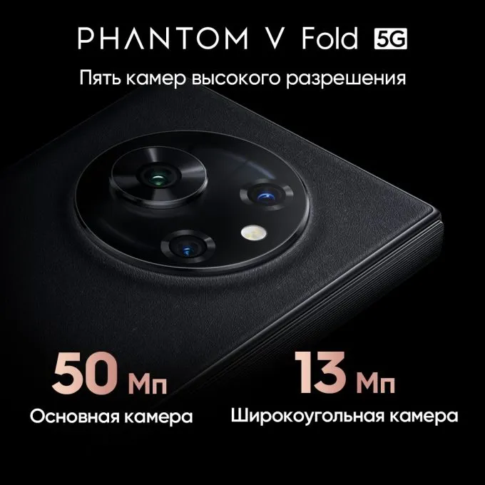 Phantom V Fold работает на базе процессора MediaTek Dimensity 9000+ — мощного чипа, который не очень активно жрет заряд аккумулятора. Есть слот под две сим-карты и поддержка 5G. Телефон получил целых 12 Гбайт оперативной и 512 Гбайт встроенной памяти — даже непонятно, чем занять свободное пространство.
