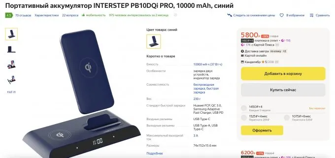 Стоимость PowerBank BoostCharge Pro составляет 99 долларов — в Россию этот аксессуар пока что не завезли. Зато мы нашли на Маркете портативный аккумулятор для смартфонов и часов Apple от Interstep. Устройство, которое можно использовать как стационарную и походную зарядку, оценили в 5800 рублей.