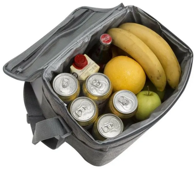 Сумка сделана из плотного водоотталкивающего материала. Светло-серая расцветка тут выбрана неслучайно — такая гамма уменьшает нагрев под солнечными лучами. Главное, что айтем сохраняет температуру до 8 часов. При желании можно докупить аккумуляторы холода — так минусовой градус внутри продержится дольше.