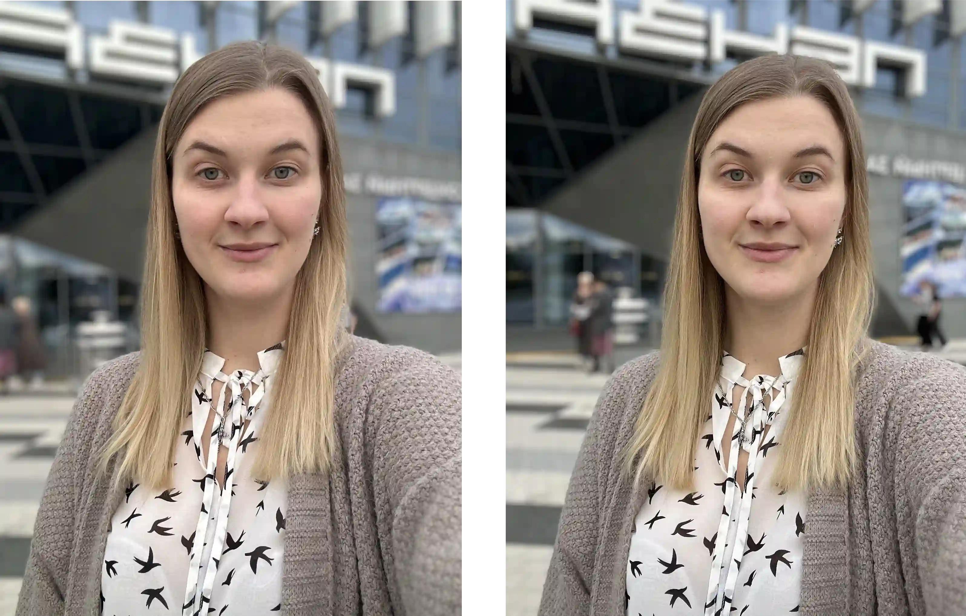 В портетном режиме опять же крайне мало отличий. Селфи на фронтальные камеры смартфоны получились аналогичные — в обновленную переднюю камеру в 14 Pro Max добавили автофокусировку, других улучшений нет.