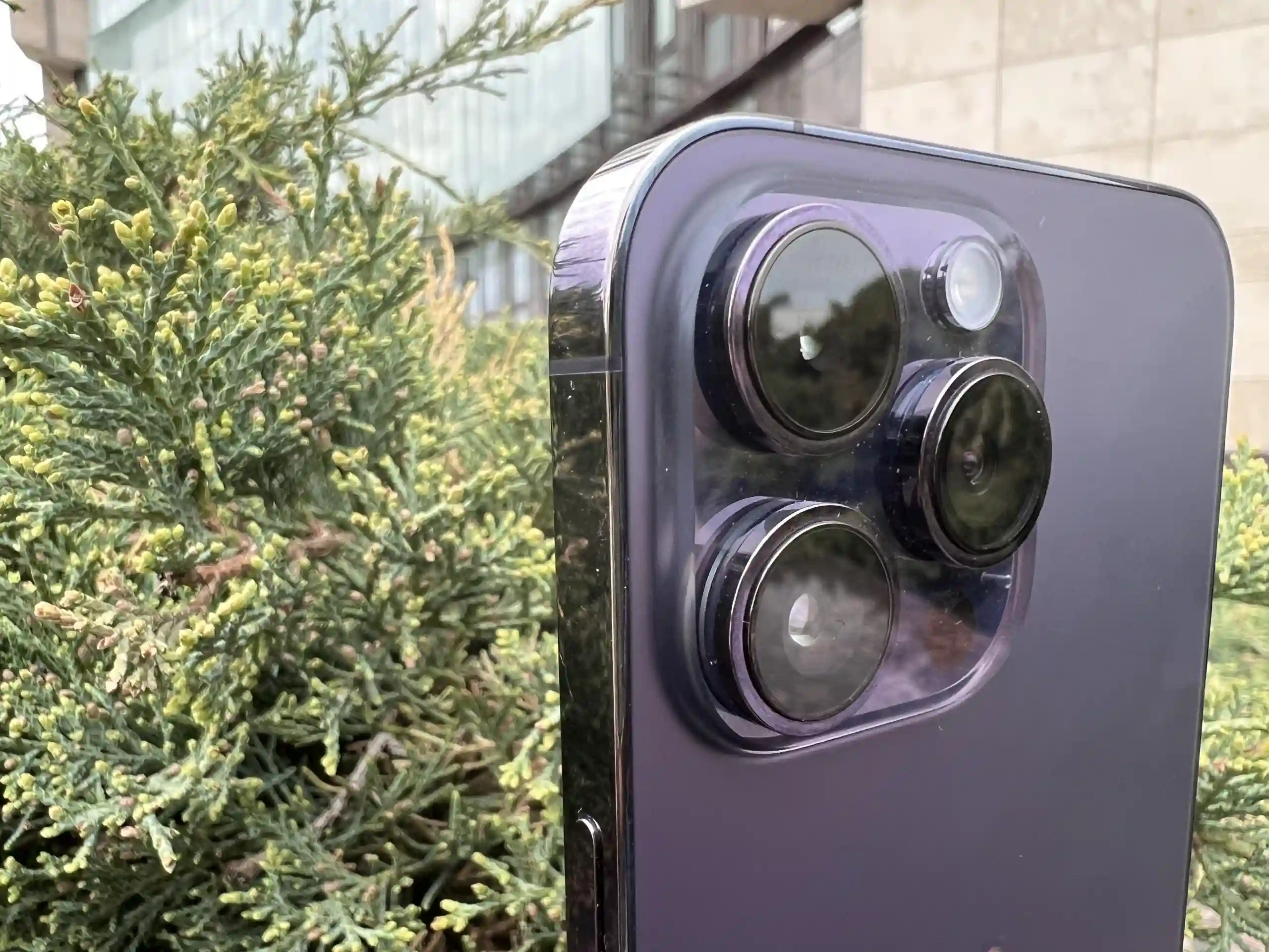 Цвет Deep Purple, на мой взгляд, немного проигрывает болотному зеленому в линейке 11 Pro, но точно лучше фирменного голубого в 13 Pro. Правда фиолетовым смартфон кажется только при хорошем освещении — в сумерках 14 Pro Max выглядит просто серым.