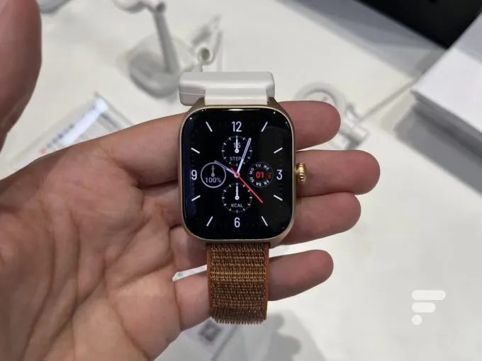 В техническом плане у GTS 4 всё шикарно. Гаджет оснащён прямоугольным 1,75-дюймовым AMOLED-дисплеем с разрешением 390×450 пикселей и функцией Always-On Display для отображения самых важных показателей. Всё это упаковано в модный 42-мм корпус из алюминия. Часы весят всего 27 граммов при толщине 9,9 мм. Производитель предлагает более 150 циферблатов, включая анимированные и интерактивные.