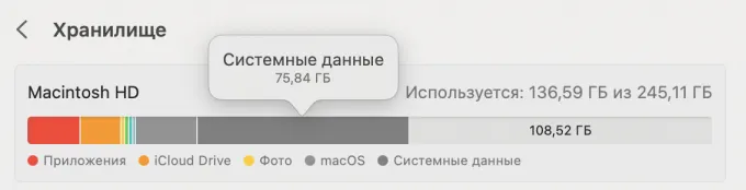 - Тормоза бывают. У меня стартовая модель с 8 Гбайт ОЗУ и 256 Гбайт памяти, и почти 80 Гбайт уже заняли «системные данные». Иногда бывает, что редактируешь большой текст в Safari и чувствуешь, как процессор M1 начинает троттлить, а в браузере появляется сообщение, что вкладке не хватает памяти. Базовые маки отбирают физическую память в пользу оперативной, поэтому в большинстве случаев проблема решается удалением мусора утилитами типа CleanMyMac или DaisyDisk. Но как хранилище тяжелых файлов MacBook Air лучше не использовать.