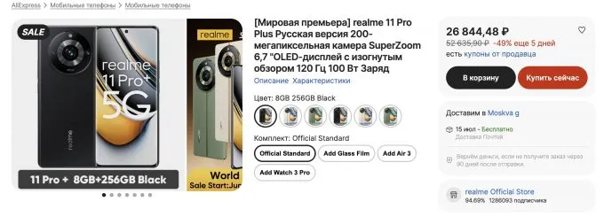 Месяц назад китайская компания Realme представила субфлагман 11 Pro+. Тогда мы поразились спецификациям устройства и низкой ценой (около 22 тысяч в переводе на наши деньги) и пообещали, что будем ловить смартфон на Али.