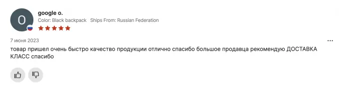 Еще один приятный бонус: товар везут из России, поэтому если вы закажете рюкзак прямо сейчас, то вам доставят его за 3-4 дня.
