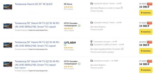 Несмотря на скачки курса рубля, Xiaomi TV Q2 50″ пока ещё можно выхватить на Яндекс.Маркете всего за 34 990 рублей. Более того, с такой покупки можно получить солидный кэшбек в некоторых банках.