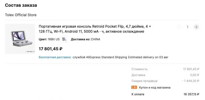 Сейчас на AliExpress новенькую портативную консоль Retroid Pocket Flip можно забрать за 16 358 рублей с учётом купонов продавца. Если давно искали такой девайс, то лучше поспешить, ведь прайс может взлететь в любую секунду.
