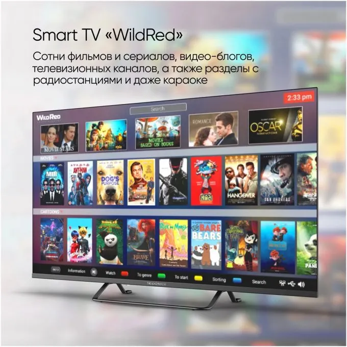 Жирнейший плюс Topdevice Frameless — операционная система Android 11 с оболочкой WildRed, которая позволяет устанавливать и запускать APK-файлы. При необходимости можно записать на телик любой медиаплеер или нужное приложение онлайн-кинотеатра.