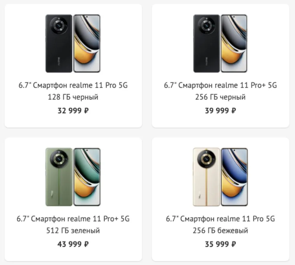 • Realme 11 Pro с 128 Гбайт — 32 999 рублей