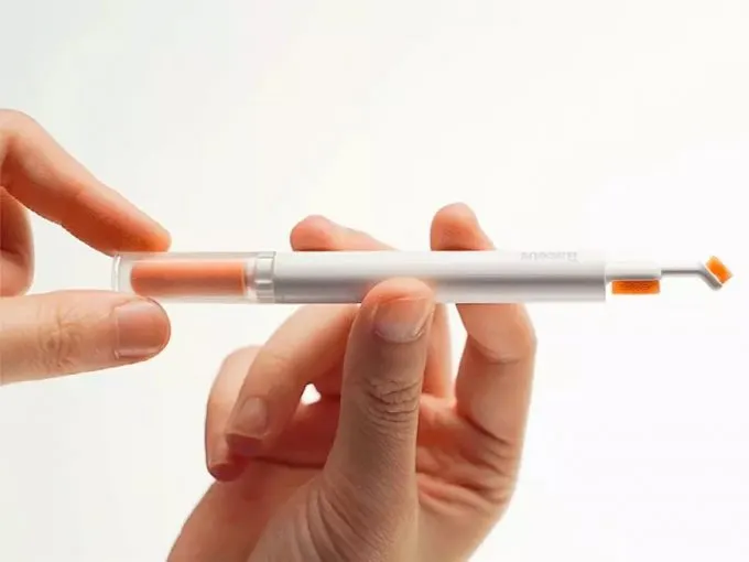 Baseus Cleaning Brush — компактнейший инструмент с двумя щётками и валиком для очистки труднодоступных участков техники от грязи и пыли. Изначально айтем производился с учётом AirPods и iPhone. Компания рассчитала толщину ворсинок и площадь мелкой щёточки, чтобы ей спокойно можно было вычистить мелкий мусор из разговорного динамика смартфона или наушников.