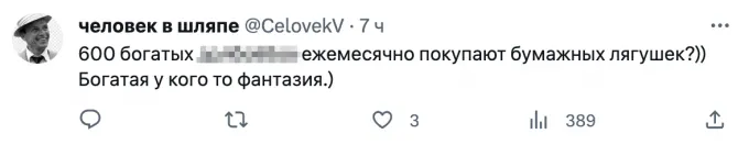 Пруфов того, что Арсений действительно получает с продажи бумажных лягушек несколько сотен тысяч рублей в месяц, не нашлось.