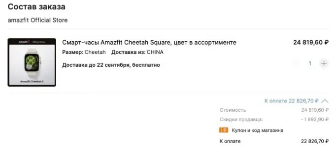 Сейчас на AliExpress можно забрать шикарные Amazfit Cheetah Square всего за 22 827 рублей с учётом купона продавца.