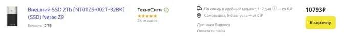 Пока цены не взлетели в космос, на Яндекс.Маркете можно купить Netac Z9 в версии на 1 ТБ за 5130 рублей, а жирнейшие 2 ТБ — за 10 800 рублей. Не забудьте, что многие банки предлагают щедрый кэшбек за покупки на этой площадке.